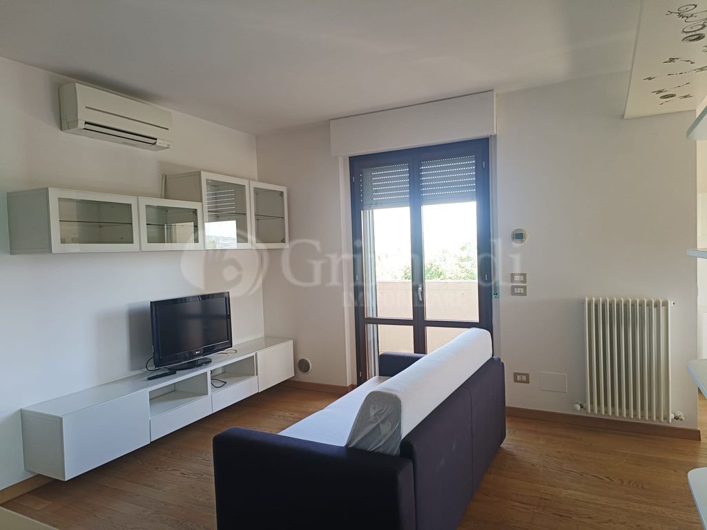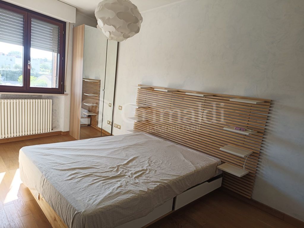 JESI ZONA SEMICENTRALE SERVITISSIMA - Appartamento RISTRUTTURATO E AMMOBILIATO, di mq 60, in piccolo condominio, al SECONDO PIANO servito da ASCENSORE così meglio descritto: ingresso direttamente nella zona soggiorno-cucina con balcone, angolo studio, disimpegno, camera matrimoniale e un bagno. Possibilità della seconda camera e spostamento della cucina grazie alla predisposizione già presente. Completa la proprietà il garage di mq 16 provvisto di punto acqua per lavatrice e cancello automatico. Classe energetica in fase di rilascio.